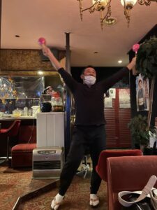 近くのスナック「モスラ」愉快なマスターとカラオケで盛り上がり、温泉街の夜は更けていきました。