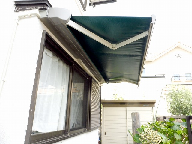 以前DKをリフォームしたお客様からの依頼。隣地が駐車場のため日射しがきついのでなにかできない?そこで日除けにオーニングをお勧め。
